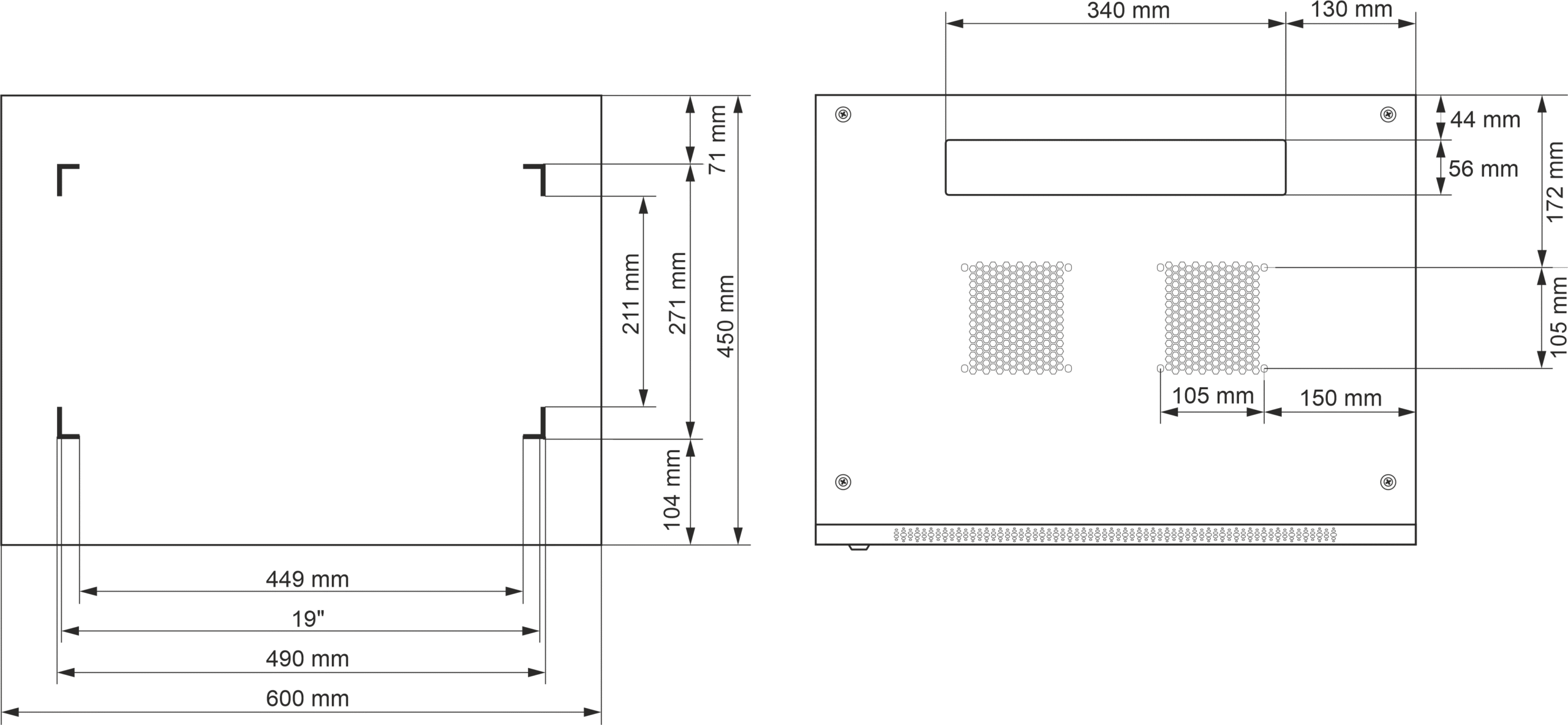 Kapp on mõeldud 19-tollise standardiga seadmete paigaldamiseks.