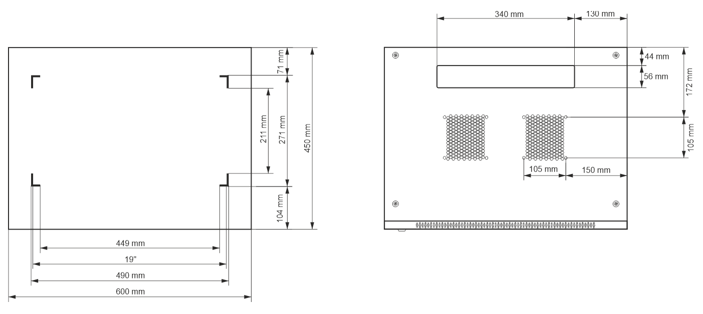 - Ülemisel paneelil ventilatsiooniavad (2 × 105 × 105 mm – paigaldusmõõtmed)