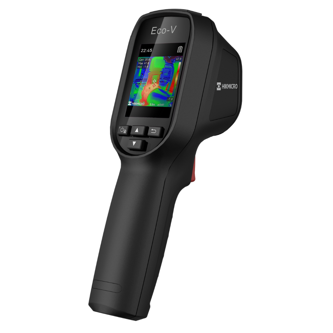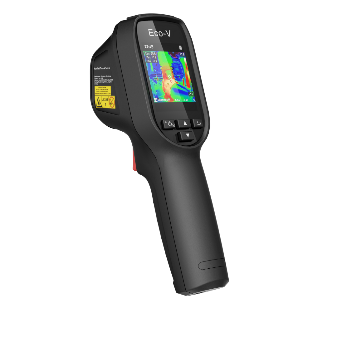 The HIKMICRO ECO-V handheld thermal camera is equipped with a 240 × 240 infrared detector and a 320 × 240 LCD display.