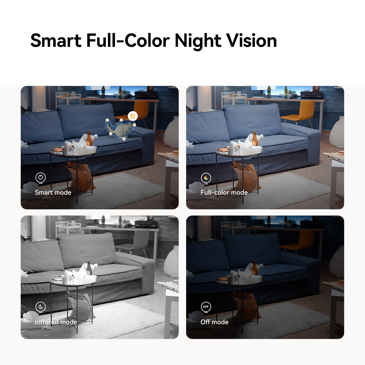 Smart Full-Color Night Vision võimaldab kaameral lülituda automaatselt värvilisele öörežiimile, pakkudes paremat nähtavust ka hämaras.