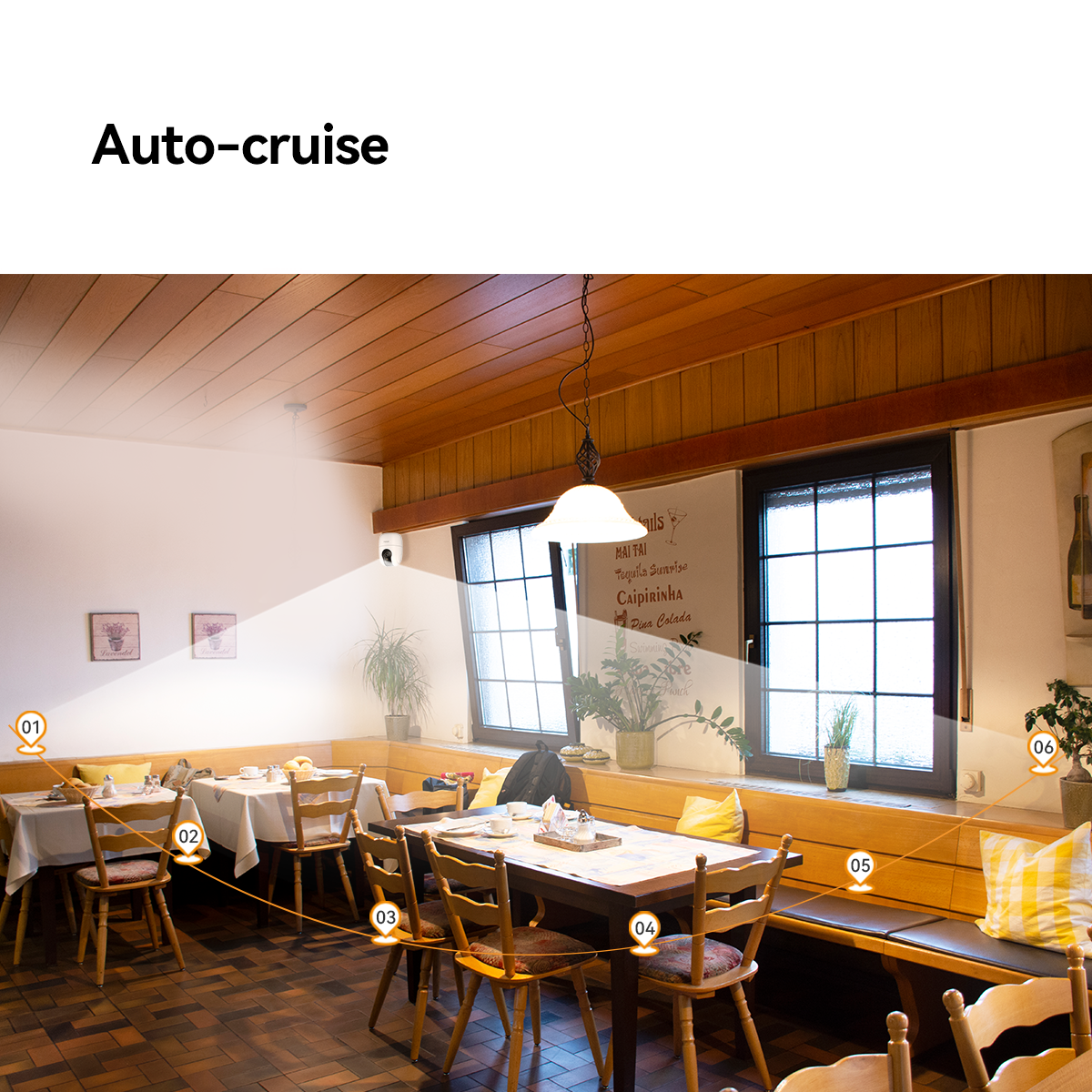 Kaamera saab automaatselt skaneerida ruumi või liikuda eelmääratud punktide vahel.