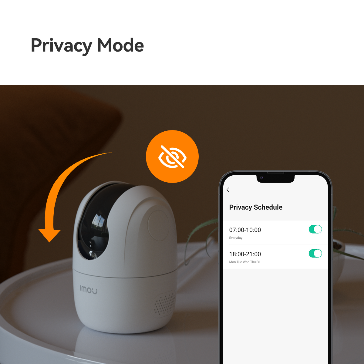 Privacy Mode peidab objektiivi, kui soovid salvestamise ajutiselt peatada.