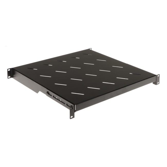 Musta värvi räkiriiul 1U kõrgusega. Kinnituste reguleerimisvahemik 450-530mm