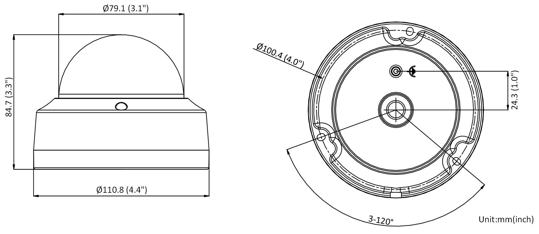 - Clear imaging against strong back light due to 120 dB true WDR technology