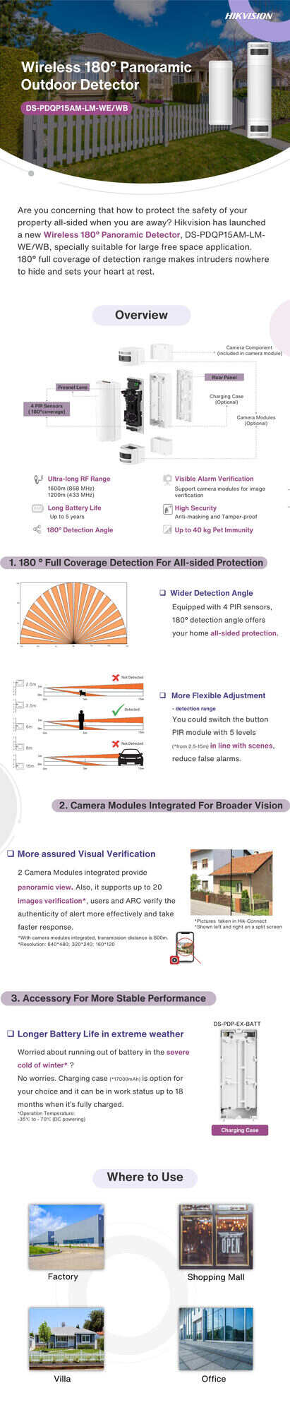 - 180° panoramic coverage