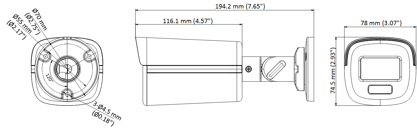 • 2.8 mm, 3.6 mm, 6mm fixed focal lens